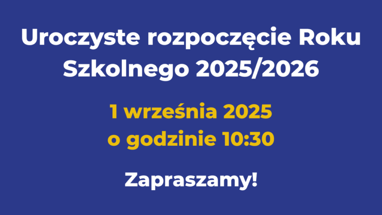 Uroczyste rozpoczęcie Roku Szkolnego 2025/2026 odbędzie się 1 września 2025 o godzinie 10:30. Zapraszamy!